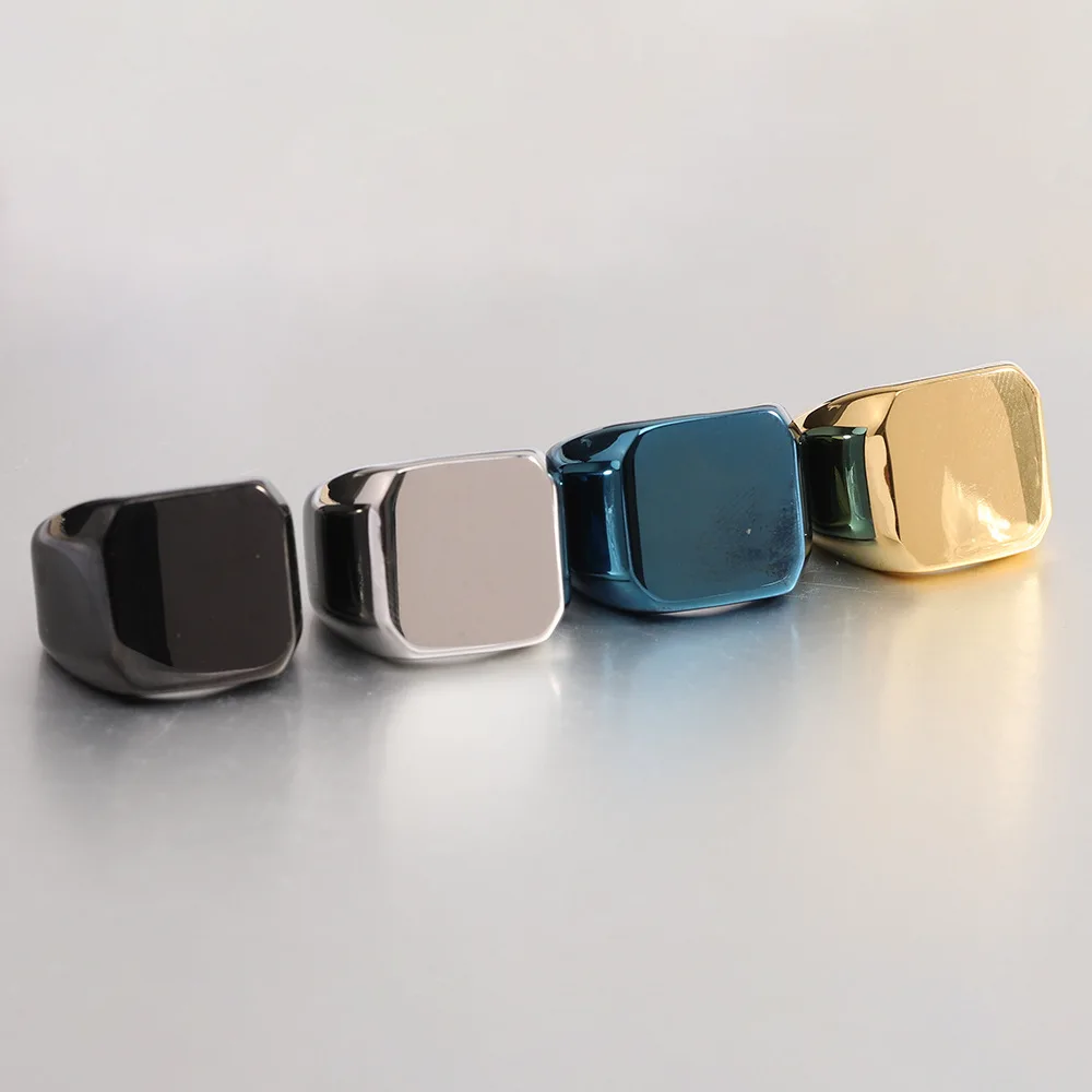 Anillo moderno de acero inoxidable con diseño cuadrado y acabado negro mate, perfecto para un look elegante y contemporáneo.