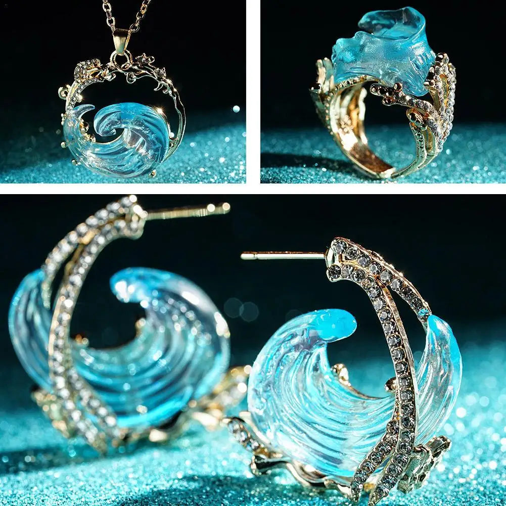 Descripción: Profundo, misterioso y lleno de luz… como el mar. El Set Océano Azul —colgante, anillo y aretes— captura la belleza serena del océano en un diseño elegante y armonioso. Sus piedras en azul intenso evocan calma, libertad y sofisticación natural.