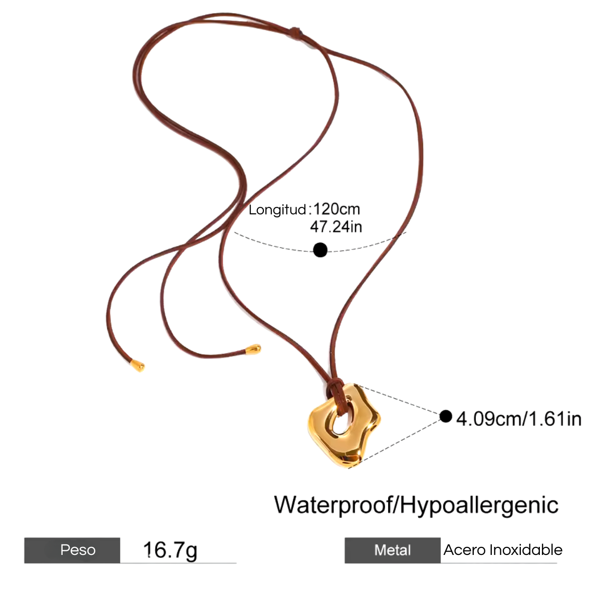 El Colgante Geométrico Irregular es una pieza que rompe con lo predecible. Su diseño abstracto y metálico, unido a una cuerda minimalista, lo convierte en un accesorio con carácter: sutil, pero lleno de presencia.